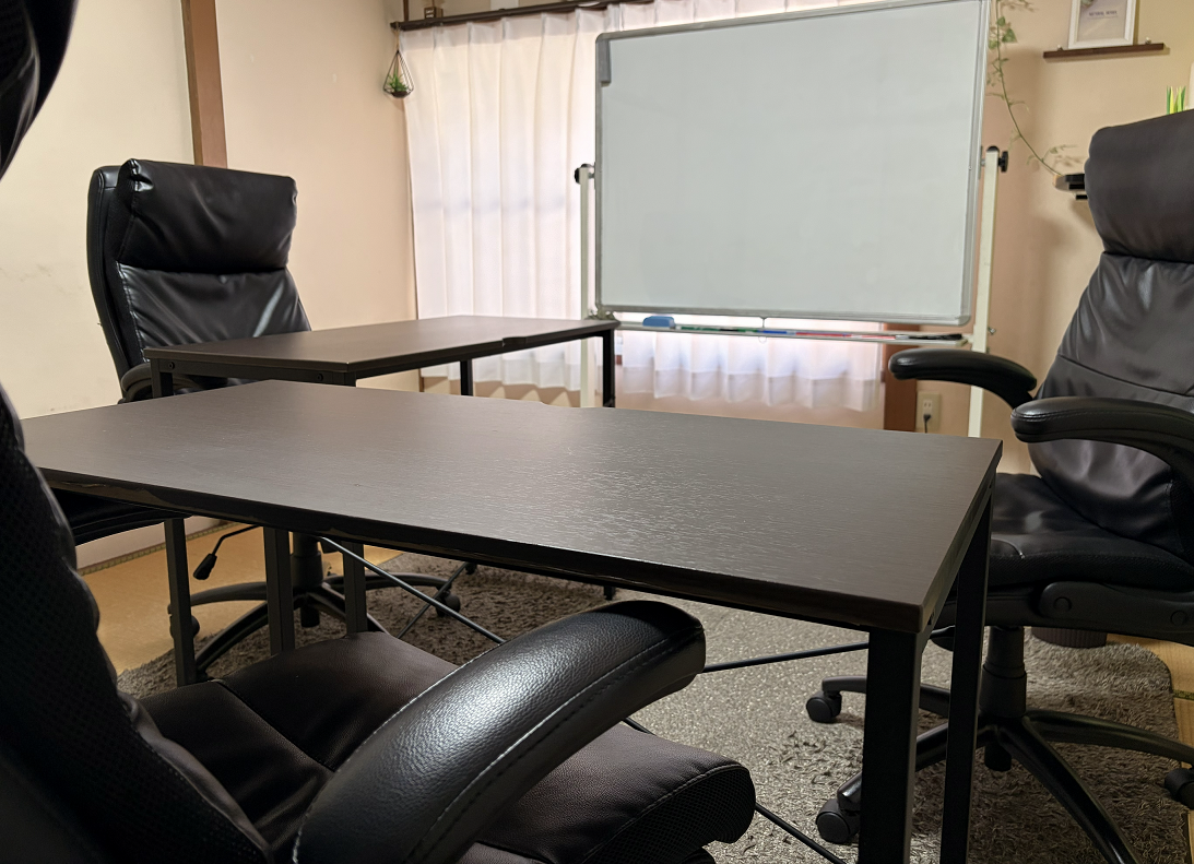 広い机、リラックスできる椅子など勉強に集中できる環境を用意しています。